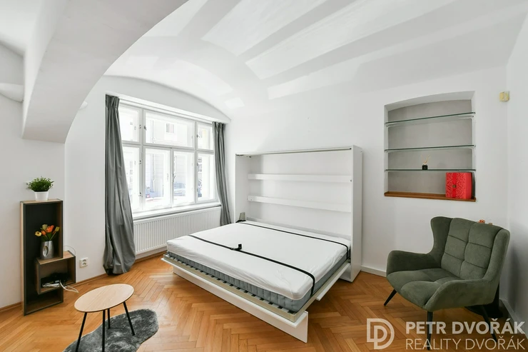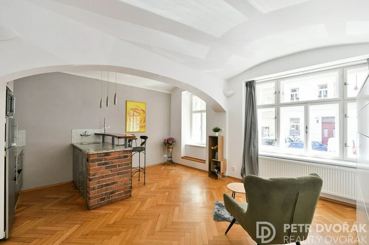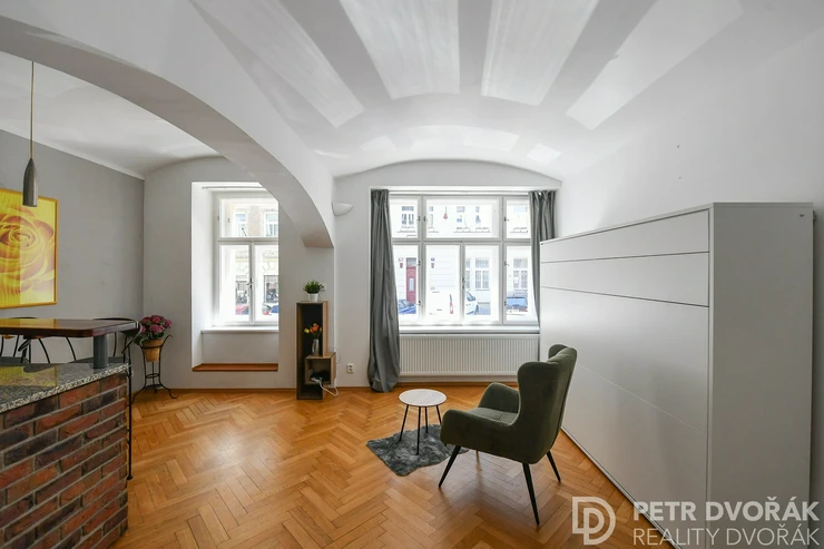 Looking for stylish and practical living in the heart of Žižkov? We are offering for sale a cozy studio apartment (1+kk) with a floor area of 40.67 m², located on the raised ground floor of a historic building on Rokycanova Street. The location is highly sought after for its unique atmosphere, excellent transport links, and proximity to green spaces.