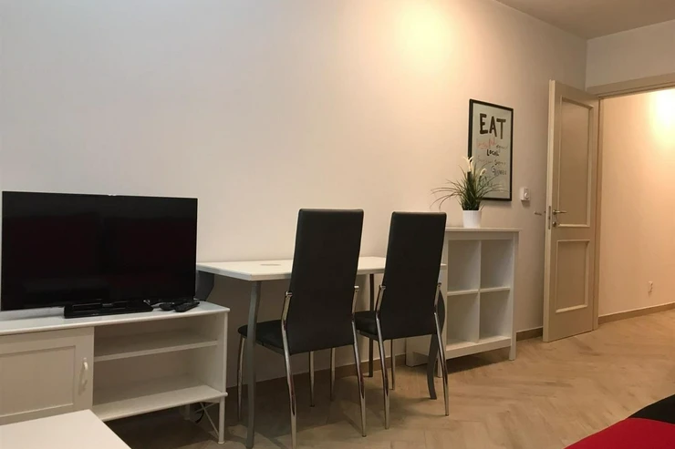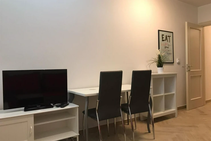 The flat is fully furnished with modern furniture and includes all appliances, TV, and Wi-Fi internet connection. The building is monitored.