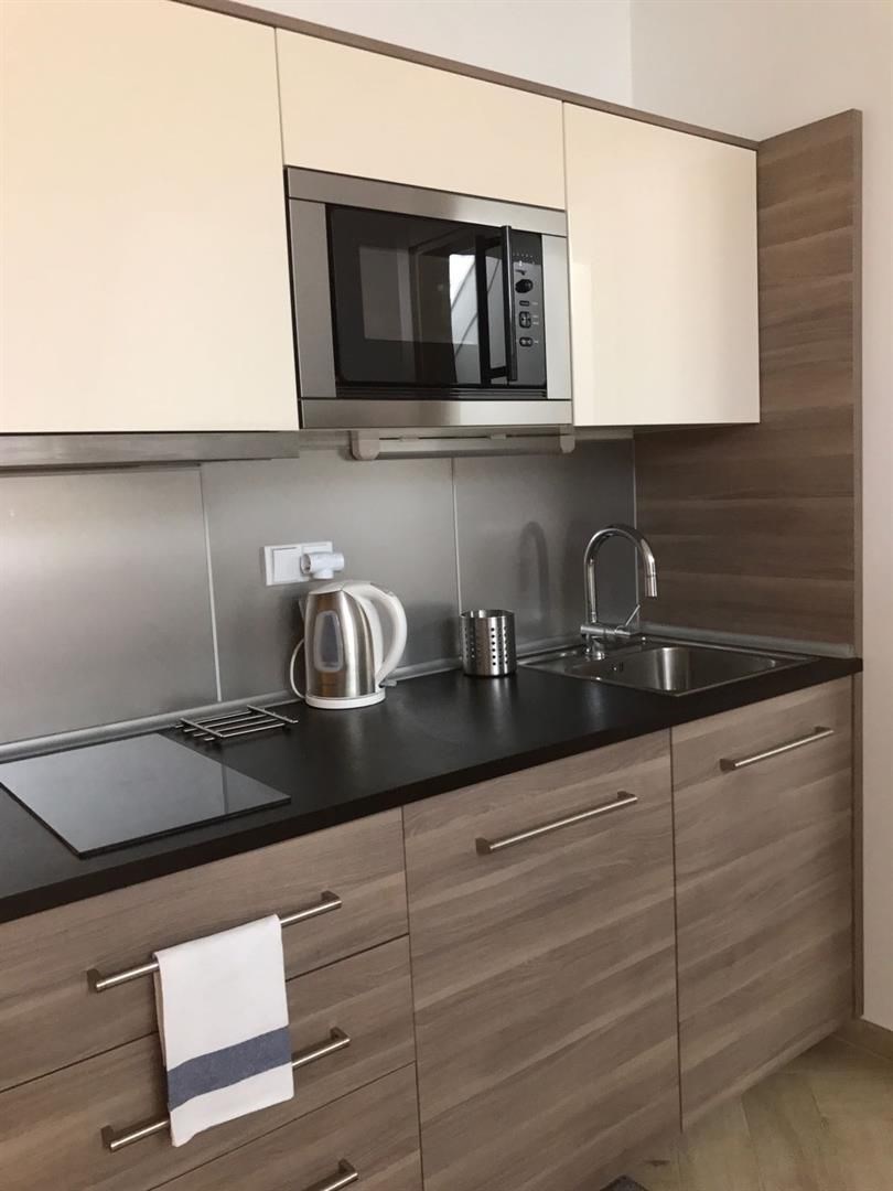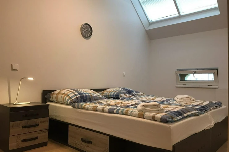 We offer a beautiful attic apartment (1-bedroom + kitchenette) for rent, located on the 4th floor of a renovated historic building with an elevator at Orebitská 15, Prague 3 – Žižkov. The apartment features a bedroom, a living room with a fully equipped kitchenette, and a bathroom with a shower and toilet.