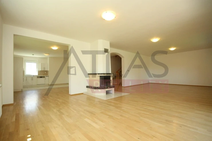 For rent: new five-bedroom family home of 400m2. On the ground floor there is a kitchen with a dining room (28m2), a spacious living room with a fireplace (51m2), a terrace 30m2, an entrance hall (13m2), a bathroom with two sinks, bath, shower and toilet, and a separate room (39m2). The kitchen unit is equipped with a dishwasher, combined stove, vapor absorber and fridge with freezer. The first floor (attic) consists of four bedrooms (39 m2, 24m2, 26m2, 26m2), a corridor, bathroom with two sinks, bath, shower and separate toilet with a bidet. In the basement there is a laundry room, storage room etc. There is a garage for 2 cars. The house is equipped with a telephone line, an alarm system and satellite television. The price does not include monthly fees of about 13, 000 CZK. Pruhonice is situated on the southern tip of Prague, approximately 15 kilometers from the center along the D1 highway. The village is dominated by a castle with a large park as well as some spectacular Botanical Gardens. The neighborhood is suitable for various sporting activities and has a number of hotels and restaurants as well as a small brewery. These facilities prove even more exquisite throughout in summer time. Within a kilometer of the village is a number of large department store with Hypernova hypermaket and other shops such as Megasport, KIKA, MAKRO, and LIDL supermarket as well as Aquapark Aquapalace with a fitness centre, sauna, cosmetics and massage services. Both a school and a kindergarten are situated nearby as well as the British International English School (www.eisp.cz) on K lesu Street in Prague 4 - Kamyk which is 20 minutes by car. Parents have arranged a school bus from Pruhonice to the school as well. For more information and property viewing please feel free to contact our English-speaking agent Jan +420 775 609 626.