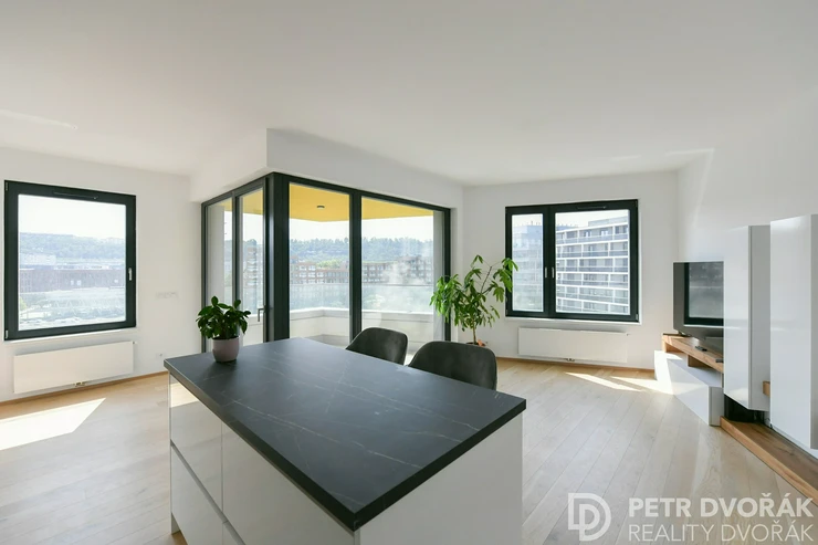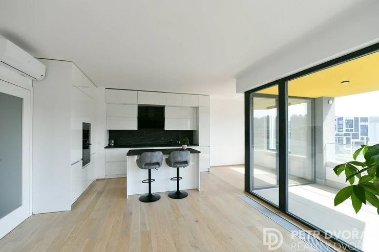 We offer for rent a brand-new, luxurious, high-standard, and partially furnished apartment with a terrace, located on the 6th floor of the new residential project Rohan City – Diamanty Karlín, designed by world-renowned architect Eva Jiřičná. The project is situated in the attractive Rohan Island area of Karlín, just a few minutes’ walk from Invalidovna metro station and close to the Vltava riverbank. A highly sought-after location with full civic amenities, quick access to the city center, cycling and running paths, a fitness/wellness center, and a golf course.