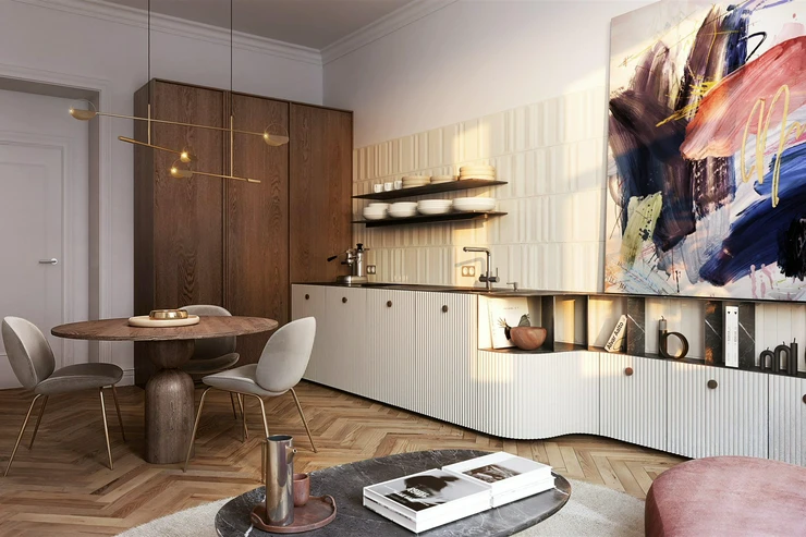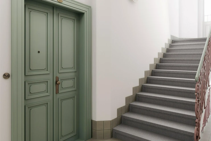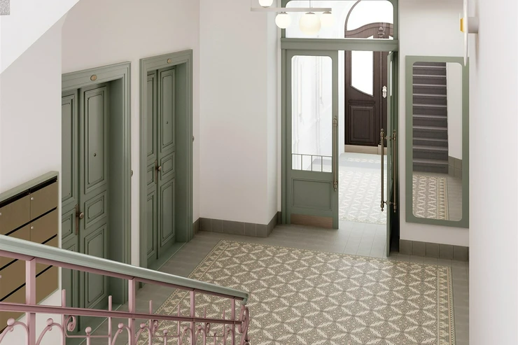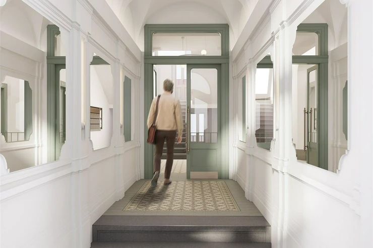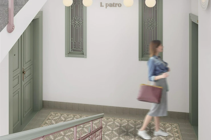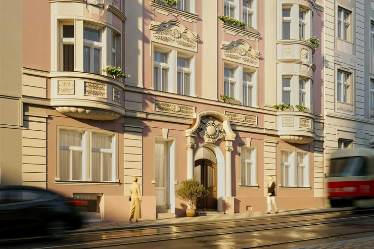 The apartment building will undergo a complete renovation. There will be stylish common areas, a modern elevator, a renovated stone staircase with a decorative railing, and new technical facilities. There will be a sauna, fitness room, bicycle room and stroller room, and in the courtyard there will be a quiet place to sit amongst the greenery. The building is on a quiet part of Bělehradská Street, just a few steps from the Nuselské schody tram stop. Popular restaurants such as Solo Bakery, Ô-mai coffee, Las Adelitas, and Da Pietro pizzeria are nearby, and Folimanka and Grébovka parks are also within walking distance. There are pharmacies, schools, fitness centers, and common services in the neighborhood. The I.P. Pavlova metro station is minutes away by tram, while the city center is a mere ten minutes by tram.