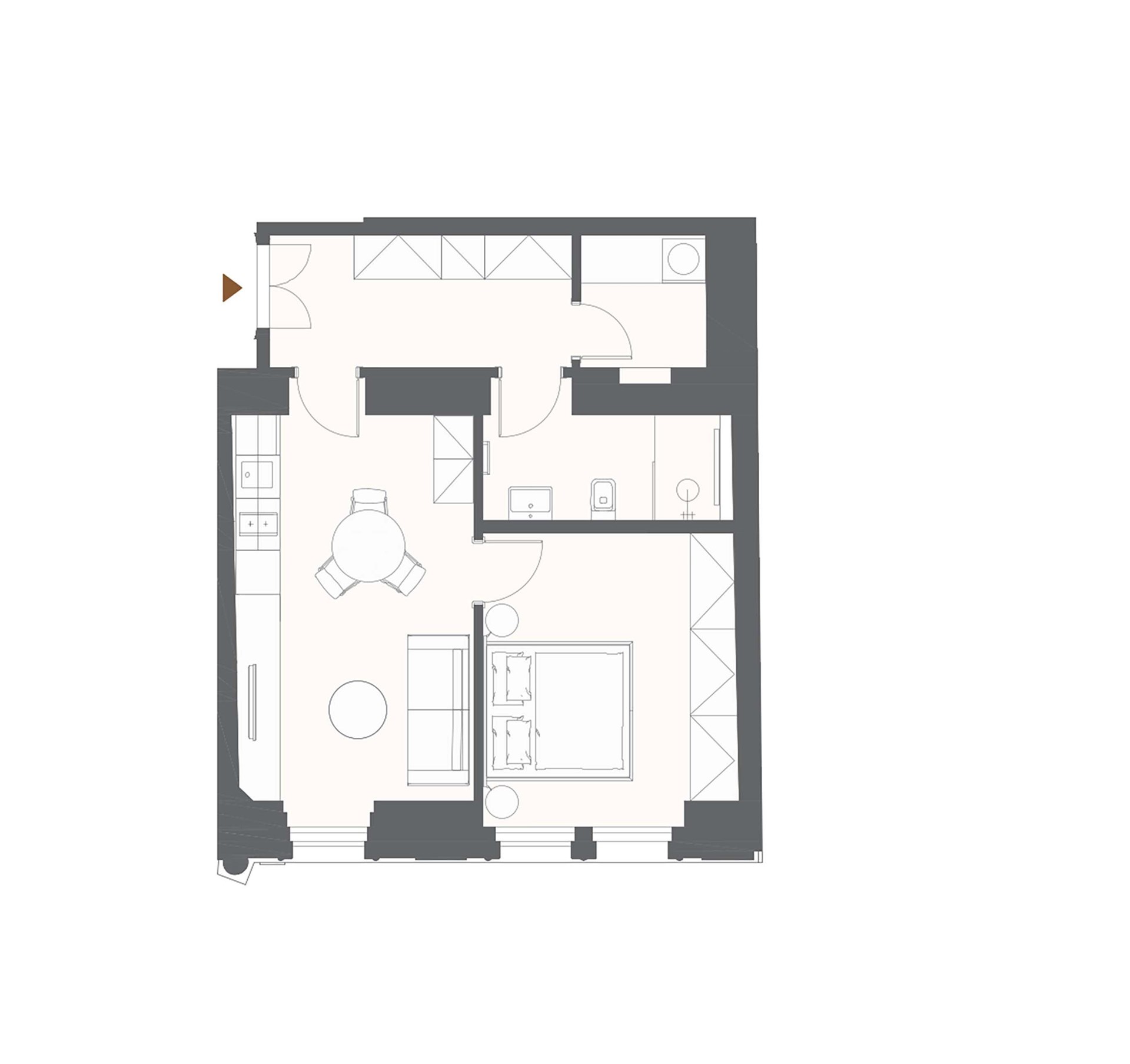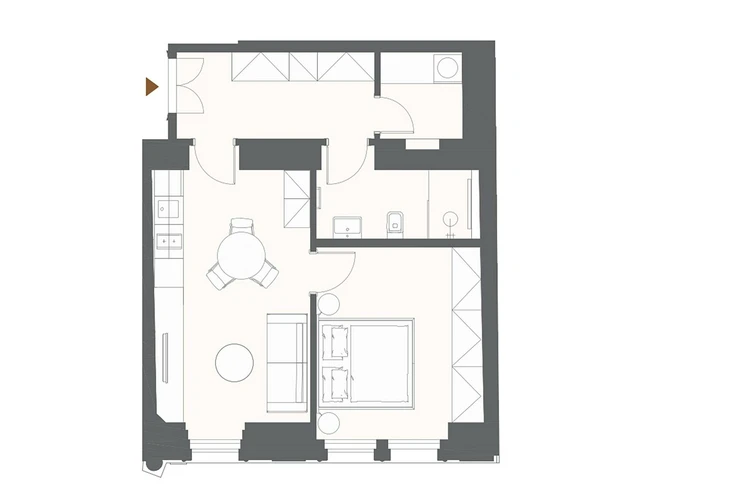 This north-facing one-bedroom apartment with a floor area of 53 m² is part of the new Bělehradská 29 residential project, which is being created by a complete reconstruction of a Neo-Baroque apartment building from 1910. It is located on the border of Vinohrady and Nusle - in a lively neighborhood with cafes, services, and greenery, just a minute on foot from the Nuselské schody tram stop. Completion is planned for the 3rd quarter of 2026. The floor plan of the 1st floor apartment includes an open-plan living room with preparation for a kitchen, a bedroom, an entrance hall, a practical storage room, and a bathroom with a shower and a toilet. The unit also includes a cellar.