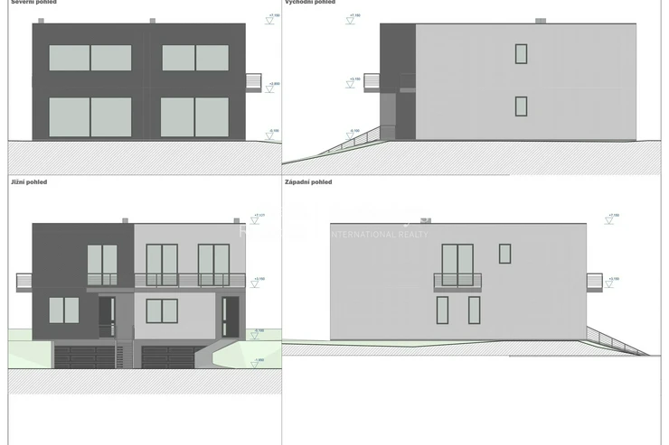 The construction is based on high-quality ceramic bricks with graphite polystyrene insulation, the ceilings are monolithic reinforced concrete and flat roofs covered with Fatrafol foil. Large-format windows with insulating triple glazing are complemented by electrically controlled external blinds. Heating is provided by underfloor heating connected to a gas condensing boiler with a hot water tank, comfort is complemented by a recuperation unit and readiness for a heat pump and a photovoltaic system.