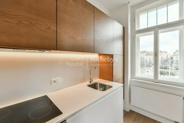 Czech Republic Sotheby’s International Realty offers for rent a bright apartment with elegant features, located in a fully renovated building directly on Jiřího z Poděbrad Square.