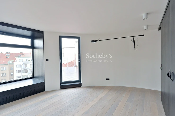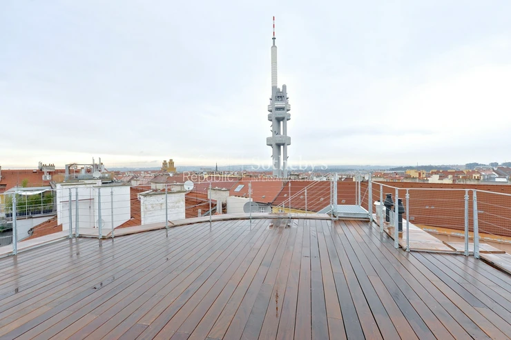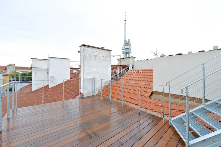Sotheby’s International Realty Czech Republic offers for rent a luxury penthouse apartment with a terrace in a fully renovated building located directly on Jiřího z Poděbrad Square.