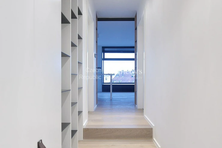 This modern 1-bedroom apartment (60 sqm) features an exceptionally spacious terrace (40 + 60 sqm) with breathtaking views of the surrounding area and the Prague skyline, including the Žižkov TV Tower. Situated on the top floor of the building, the apartment is finished to a high standard with oak floors, new double-glazed windows, and air conditioning. Its minimalist design in neutral tones will satisfy even the most demanding clients.