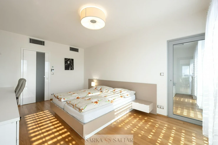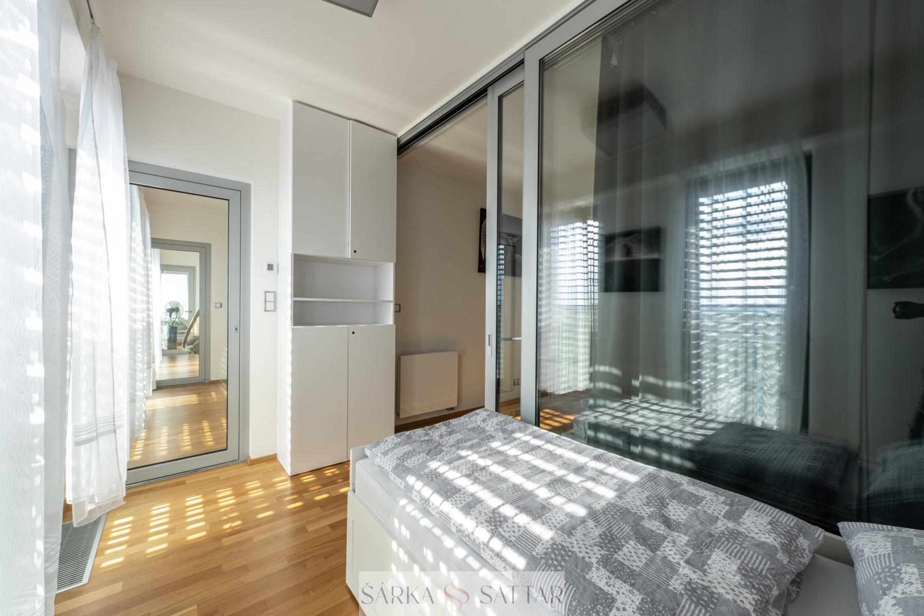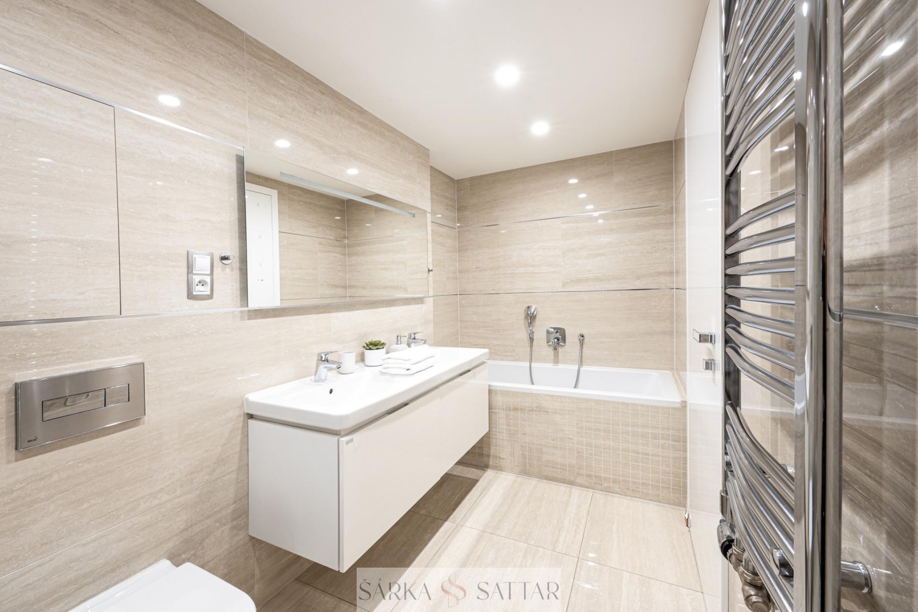We exclusively offer you a beautiful, furnished and fully air-conditioned apartment 4+kk 116m2, winter gardens 16m2, plus garage space, on the 17th floor (of 19th floor) of the modern residence Park Garden Towers in Prague 3 Žižkov, Olšanská street.