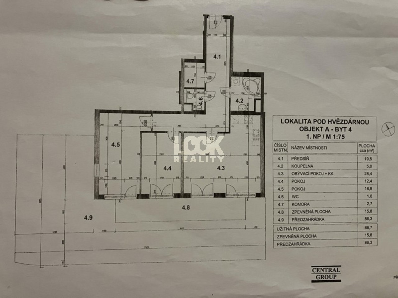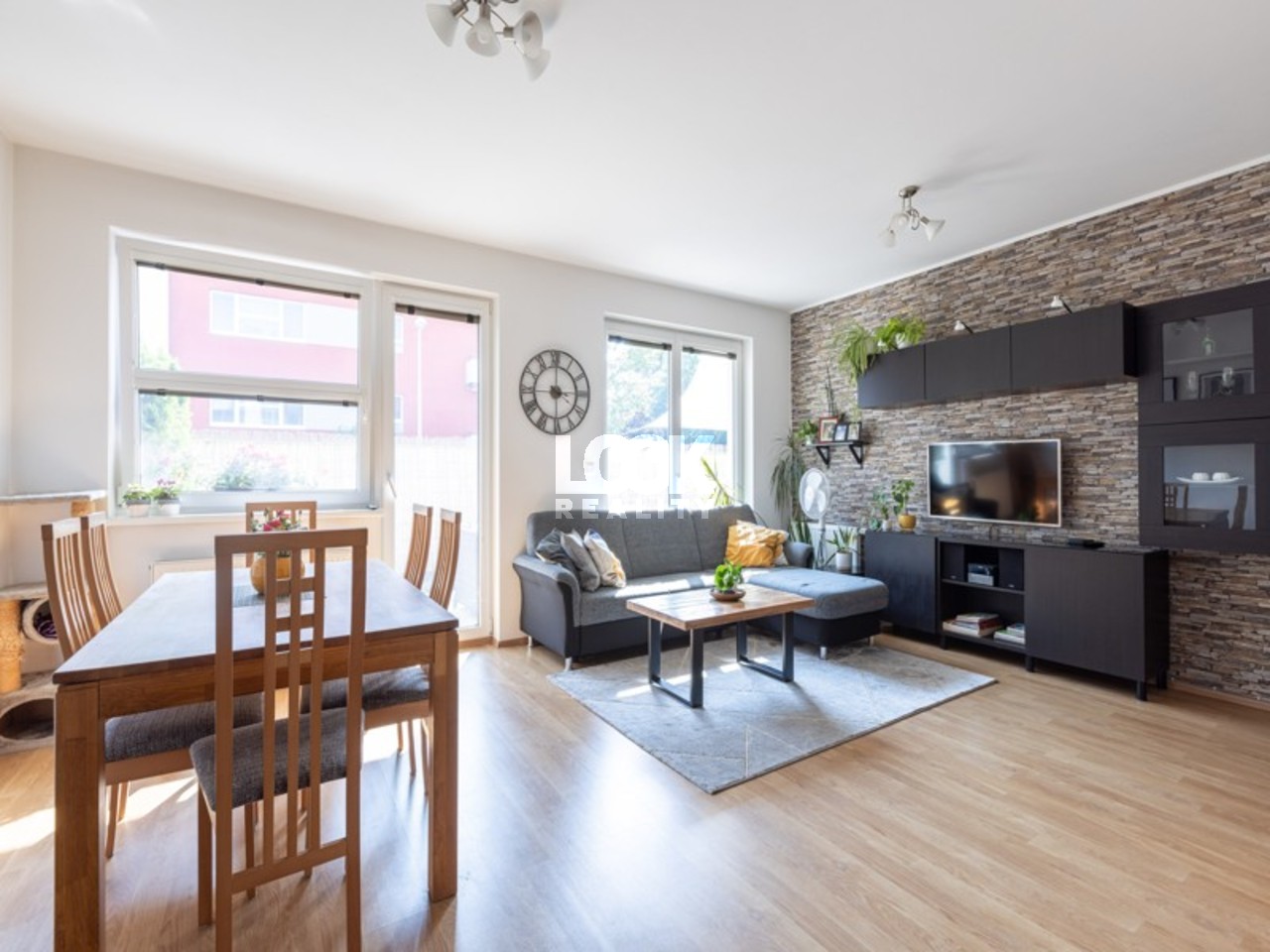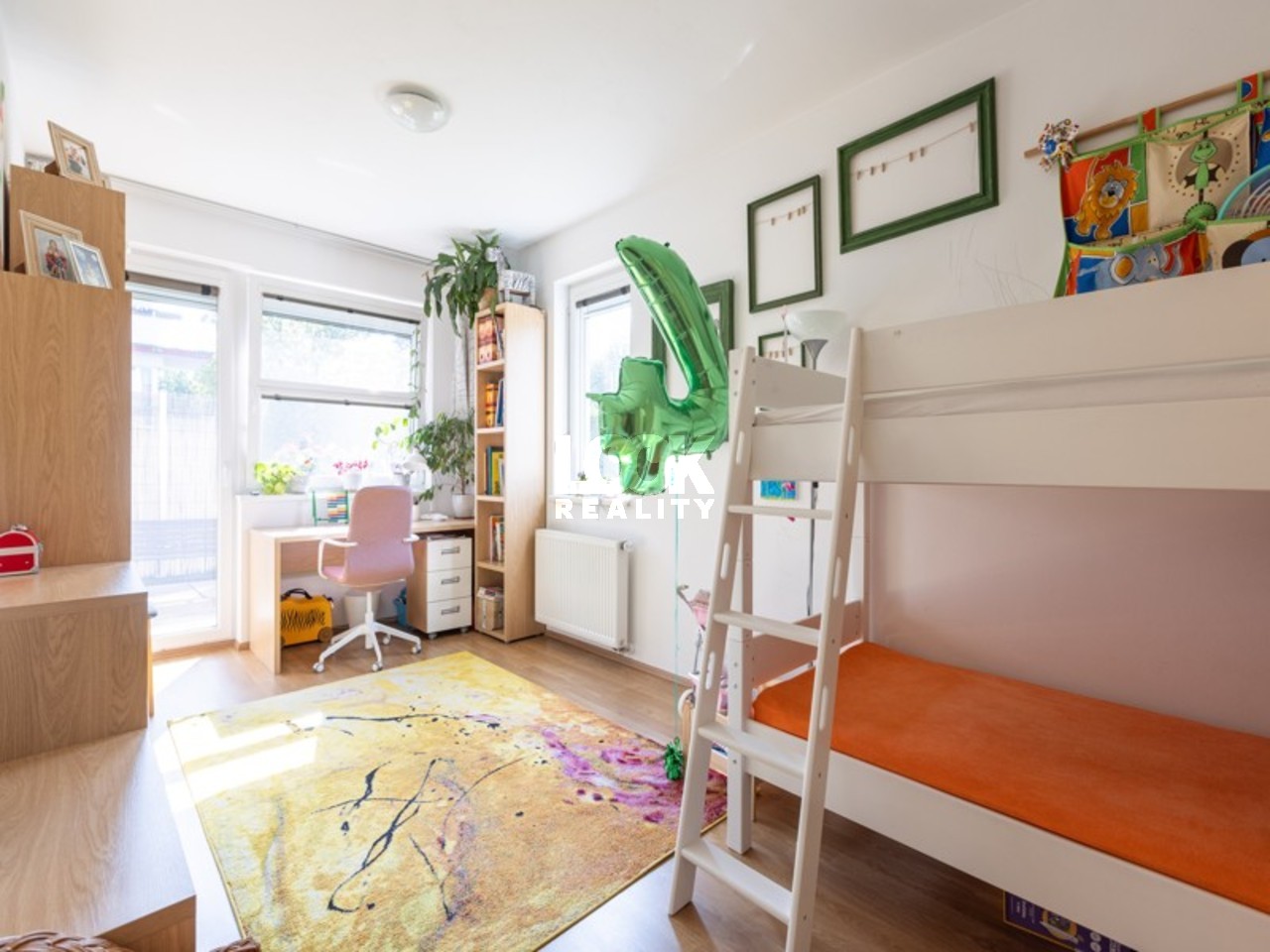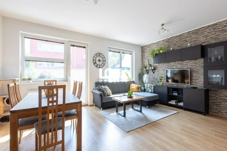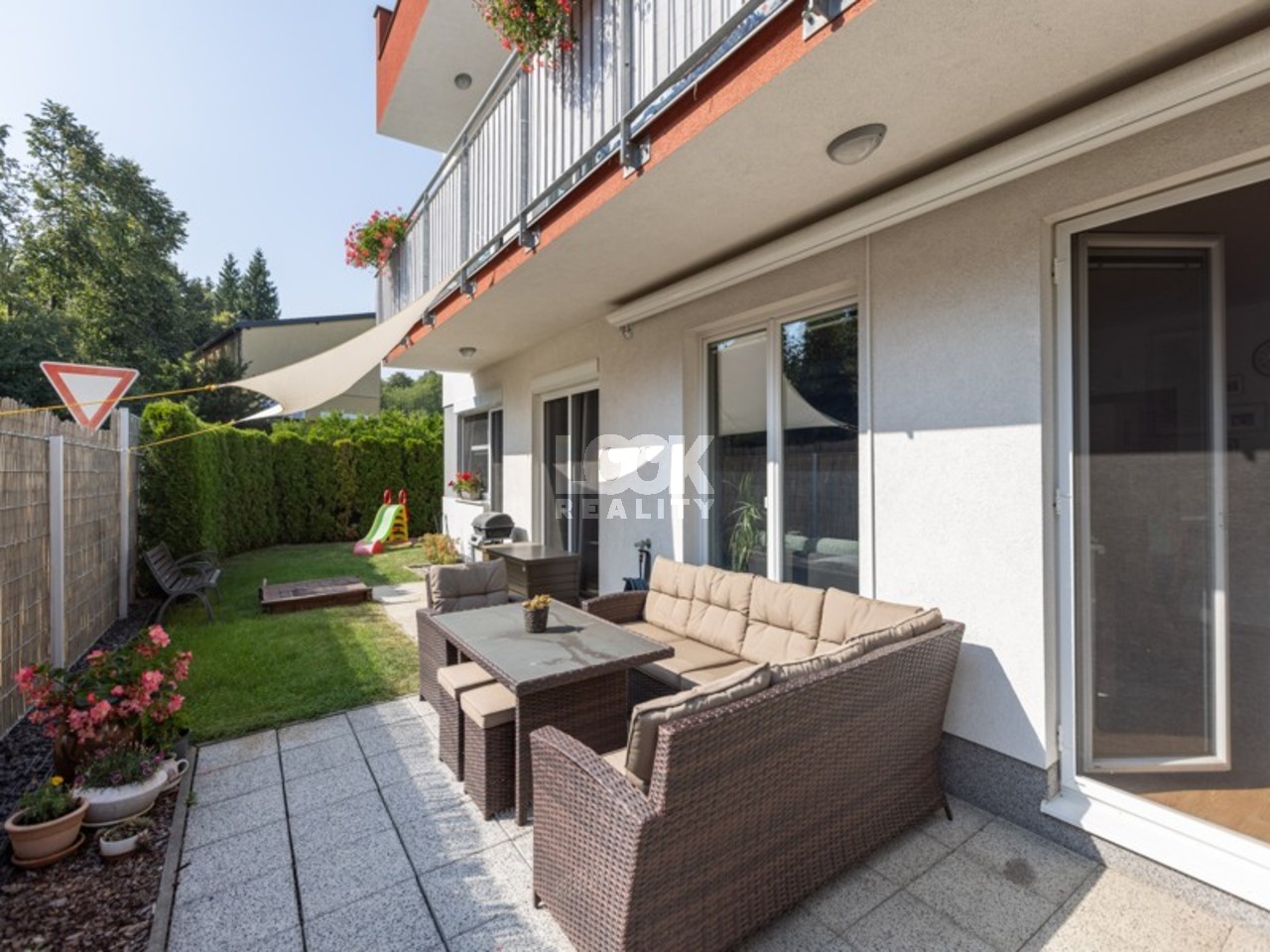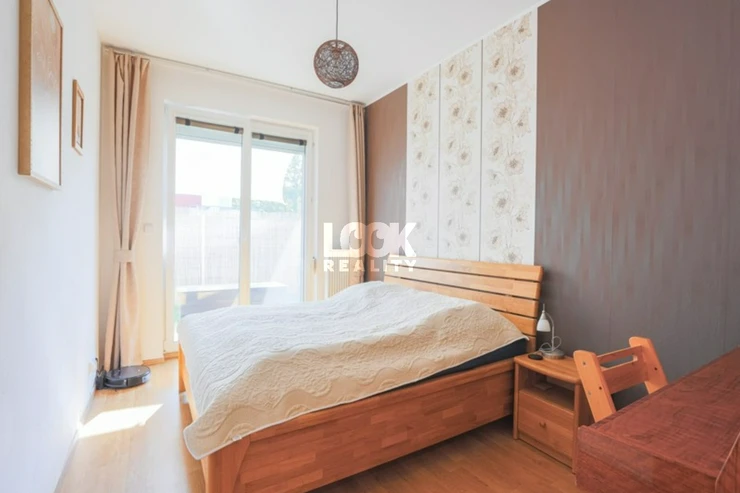 For rent beautiful apartment with garden in Prague 8 - Dablice. We offer for rent a beautiful apartment available 3+kk, located in the street Nad Akcizem, in Prague - Dablice. The total area is 87 m2. The apartment is located on the ground floor. It is rented partially furnished. But it could be even unfurnished. It consists of a spacious living room with a kitchenette, which is furnished with a modern sofa set, a dining table and a fully equipped kitchenette - ceramic hob with oven, dishwasher. The apartment also consists of two separate rooms, one is furnished (with a double bed), the other is a children's room or the second bedroom - this bedroom is partially furnished - library, working table, some wardrobes. The bathroom has a spacious bathtub and the washing machine with dryer. There is separated toilet. There is also a storage room in the apartment. The area of the apartment is 86.7 m2. The garden is accessed from the living room and from both bedrooms. The front window blinds. The front garden consists of a paved area (25 m2) , the other part is grassy (76 m2). The garden is good for children or for a rest. The awning on the terrace. The rest of garden has 102.1 m2. The apartment has a garage, what is a big advantage. Cellar in the house. There is carriage place and wheelhouse in the house. All civic amenities are nearby - schools, kindergartens, pharmacy. Đáblice kindergarten, Đáblice school. Meridian International School is also nearby. OC Letňany - many shops, supermarket, cafes, cinema, etc is 8 minutes by car or by bus. There is also good area with forest Dablicky haj, ideal for any nature and sports lover. Excellent transport accessibility - the bus stop Ďáblický hřbitov , the tram stop Sídliště Ďáblice is within walking distance. Metro C Ladvi is 4 minutes by bus or car. Beautiful living, also suitable for families with children. We recommend.