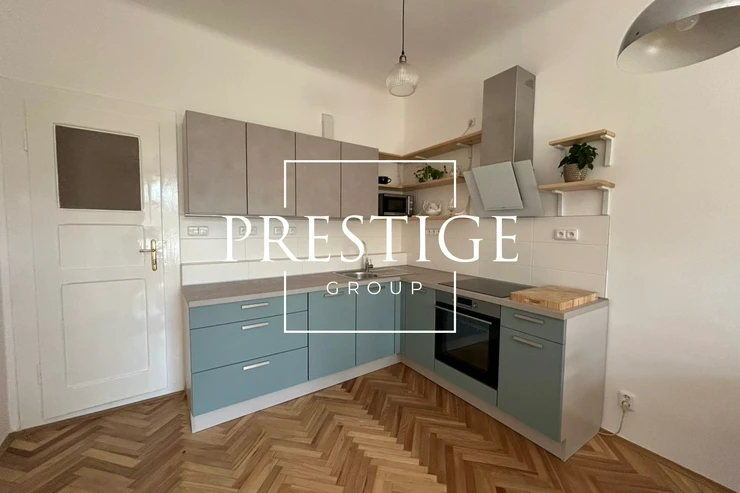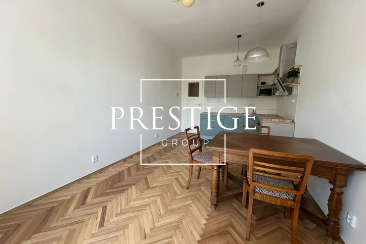 Prestige Group offers a bright 2+kk apartment with a floor area of 44 m² for long-term rent, located on the 3rd floor of a brick building without an elevator on Jaurisova Street, Prague 4 – Nusle.