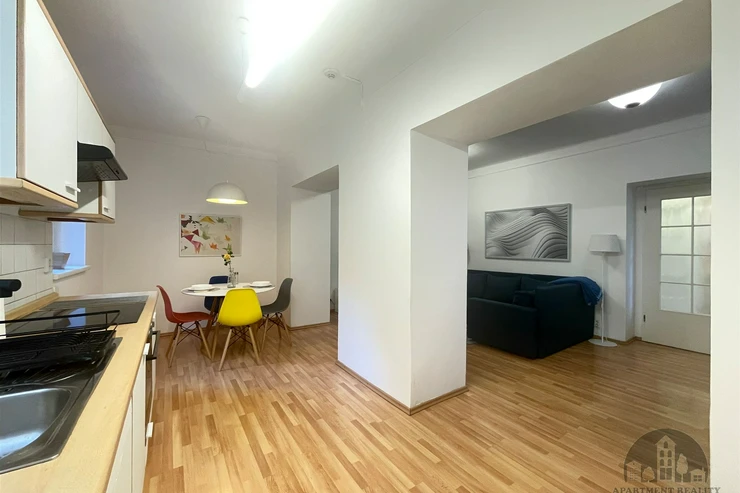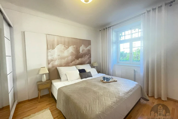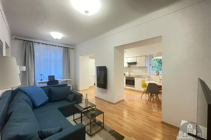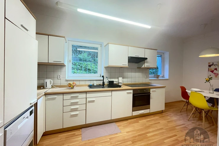 We offer a very spacious, fully-furnished 2+kk apartment for long-term rent. The apartment is 55 m² with a private front garden (15 m²) located in the sought-after area of Prague 4 - Nusle. Situated in a villa with a garden, it has a separate entrance, offers complete privacy, and is ready for immediate move-in.