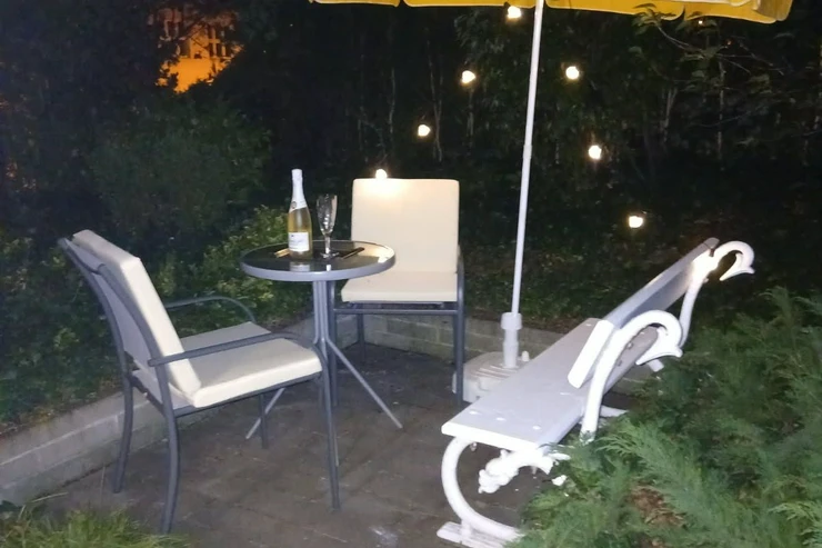 A major advantage is the private front garden with seating for four, providing complete privacy and a space to relax.