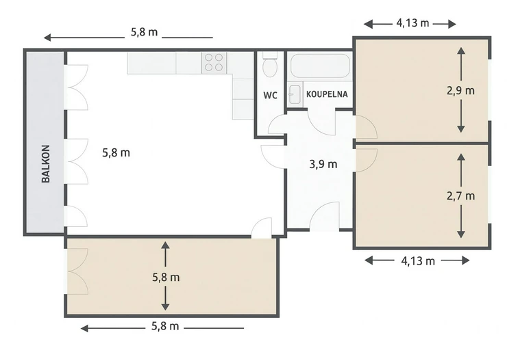 Spacious 3-Bedroom Apartment with Enclosed Loggia and Two Cellars in a Residential Part of Prague 4 – Chodov.