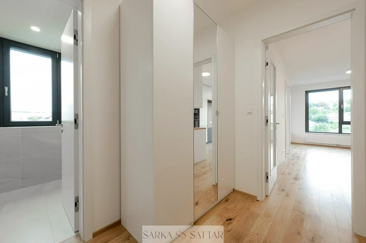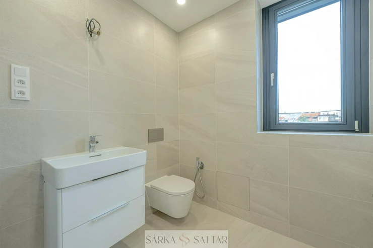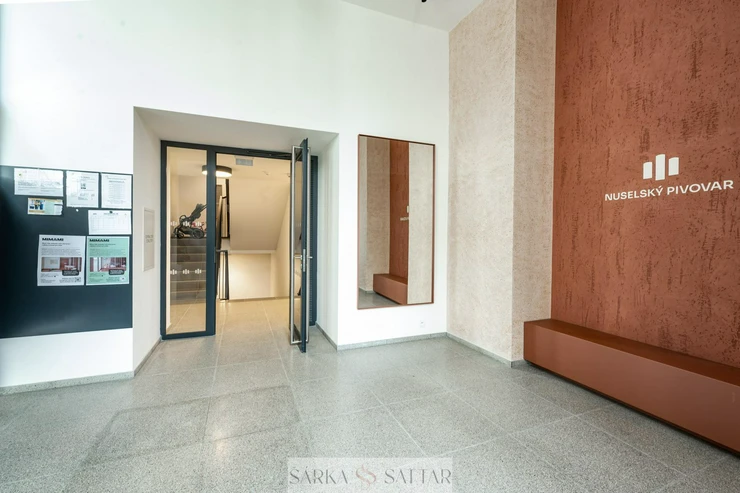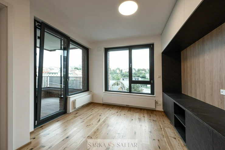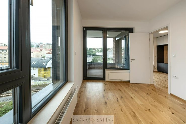 We exclusively offer for rent a beautiful and new apartment 2+kk 52.5 m2 including a terrace of 5.4 m2, a garage and a cellar on the 6th floor of the Nuselský pivovar residence, a new building built in 2025, in the desired part of Prague 4 - Nuslí, Závišova street.