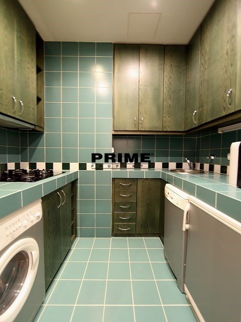 The property comprises: an entrance hallway, a living room with a dining area, a small, fully fitted kitchen with appliances (gas cooking hobs, refrigerator, dishwasher, microwave oven combined with grill and a washing machine with dryer plus dishes), a bedroom with a walk-in closet and a bathroom (with a shower cubicle, sink, toilet and a bidet).