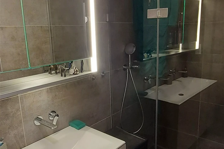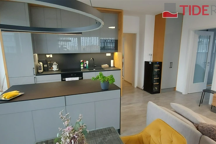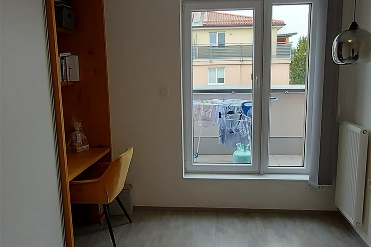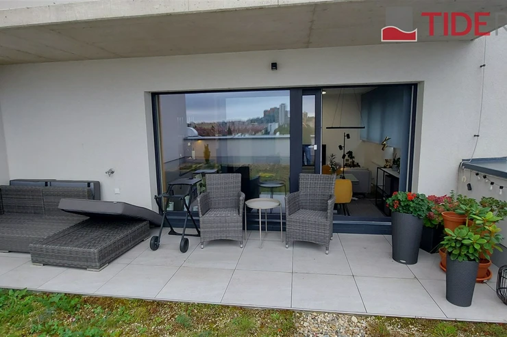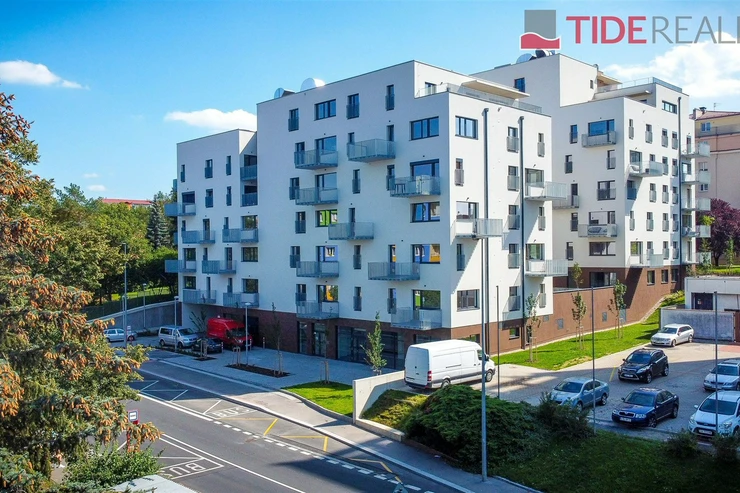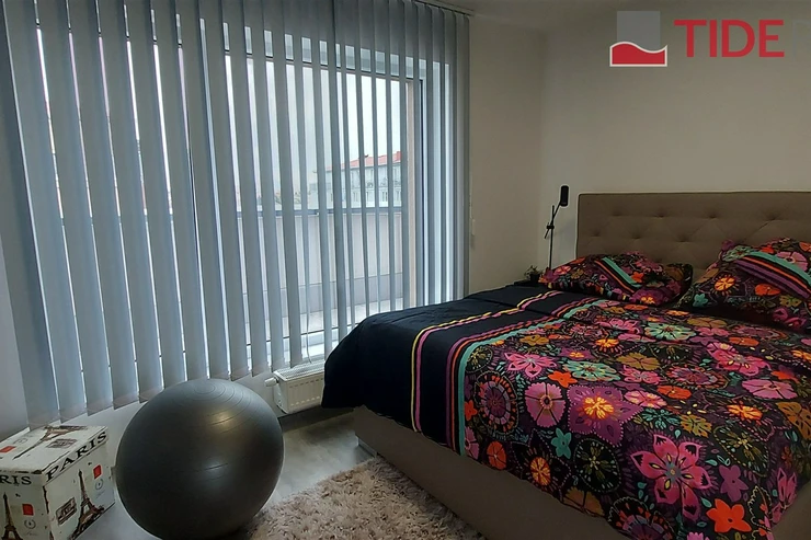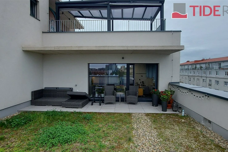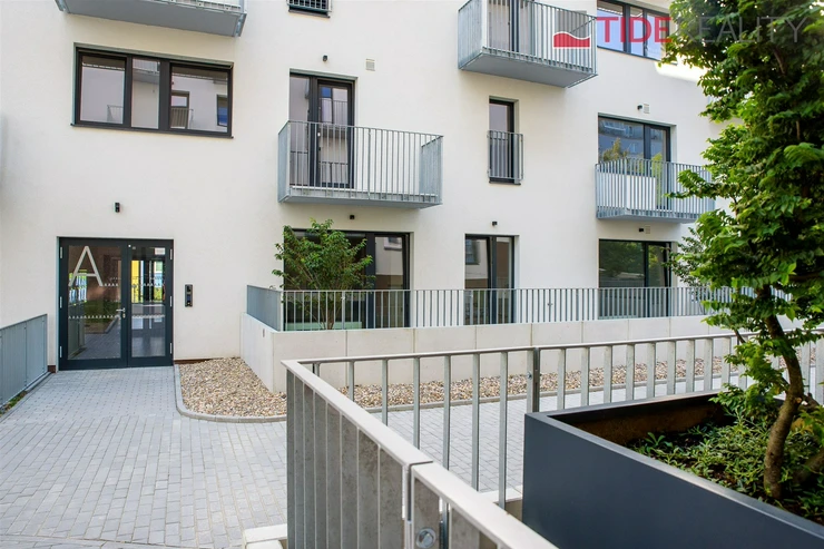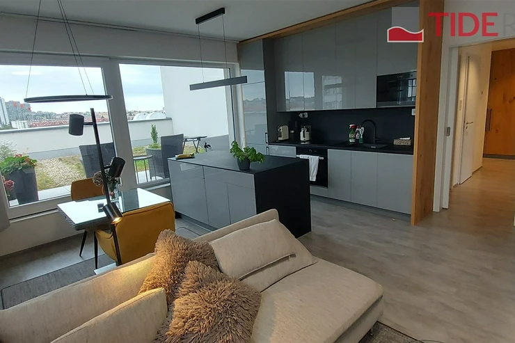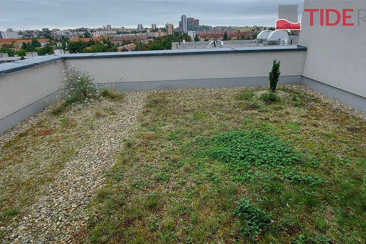 We offer for rent a modern, unfurnished 3+kk apartment (75 m²) with a large terrace (50 m²) and a parking space in the underground garage. The apartment is located in a recently completed new building in a quiet area in Strašnice, a 10-minute walk from the Strašnická metro station. The apartment consists of a living room connected with a fully equipped and modern kitchen with direct access to an amazing and spacious partly grassed private terrace, 2 bedrooms, both leading out to a long balcony ( 10 sq.m.) and situated in a quiet and peaceful area, a bathroom with a shower, a separate toilet, and a hallway. A cellar storage in the basement of the building is also included in the rent. The apartment has built-in wardrobes and vertical blinds on all windows. Situated on the 7th floor with an elevator and facing southwest. Available from January 1, 2026. The apartment is approved as a studio, so it is also suitable for offices or companies that are VAT payers. PENB - B