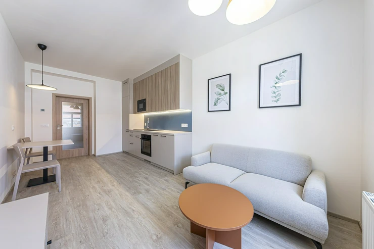 In a completely renovated apartment building in Svatoslavova street No. 16 we offer for rent a modern apartment No. 201 - 2 + kk with an area of 37.4 m². The apartment is fully equipped and ready to move in immediately. The apartment also includes a spacious balcony, which you will appreciate especially in the warmer months when relaxing with a coffee or a glass of wine.