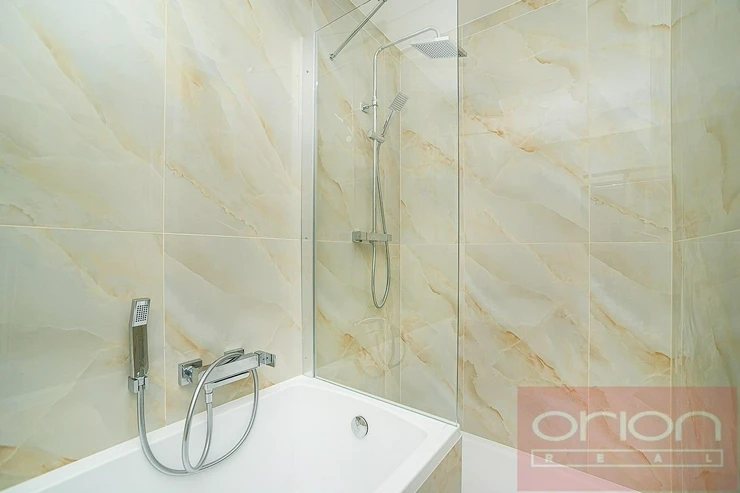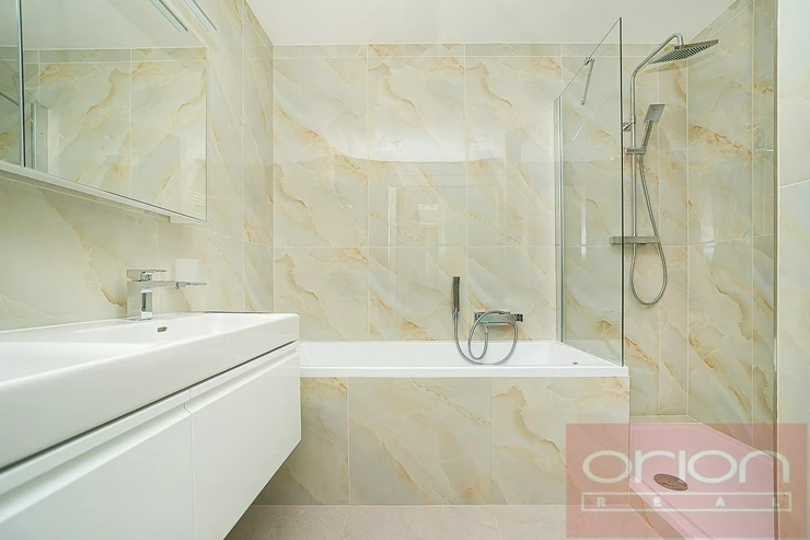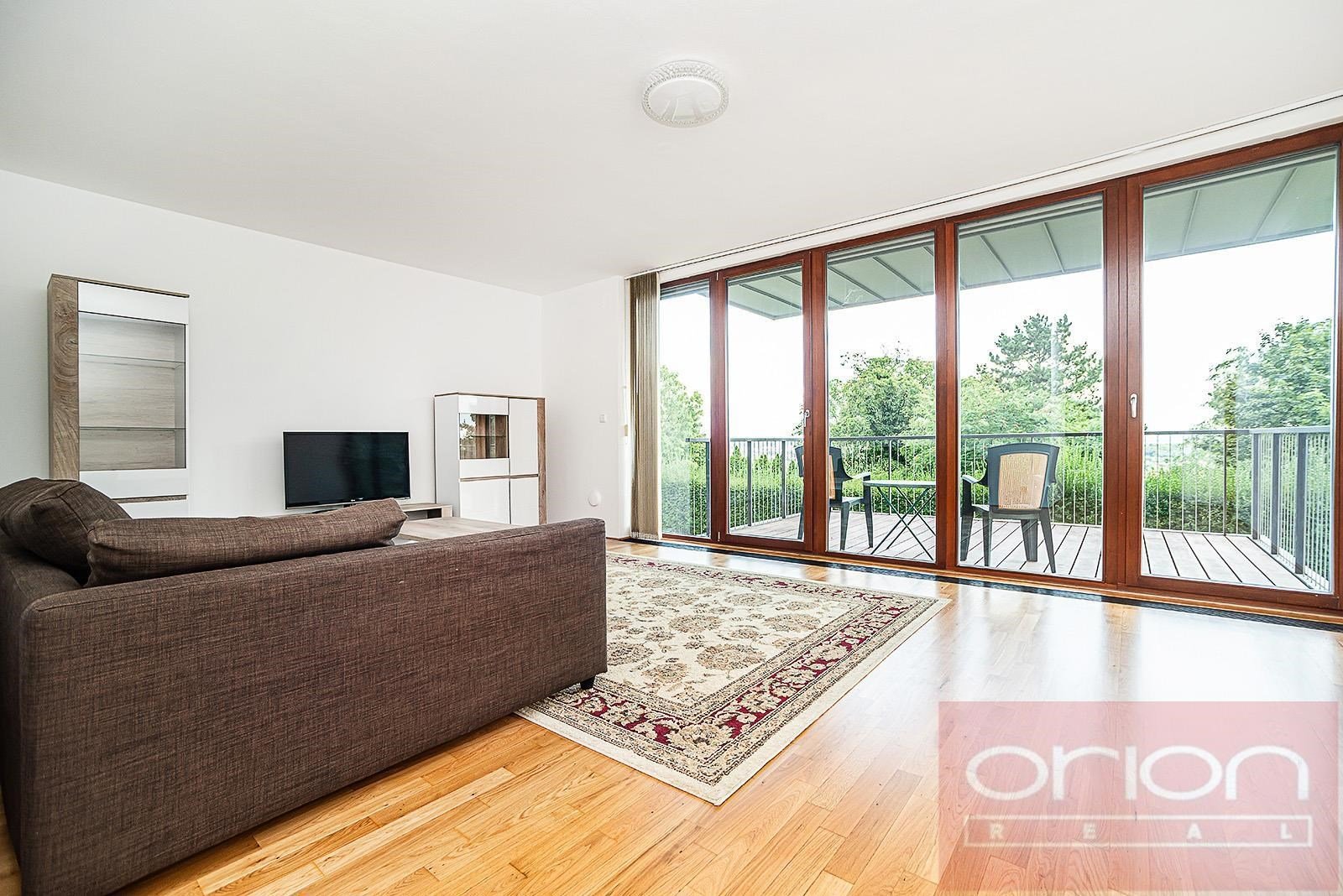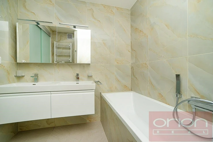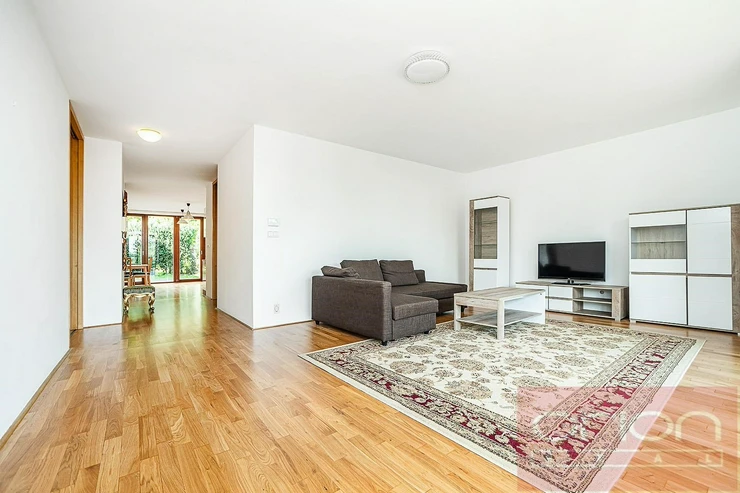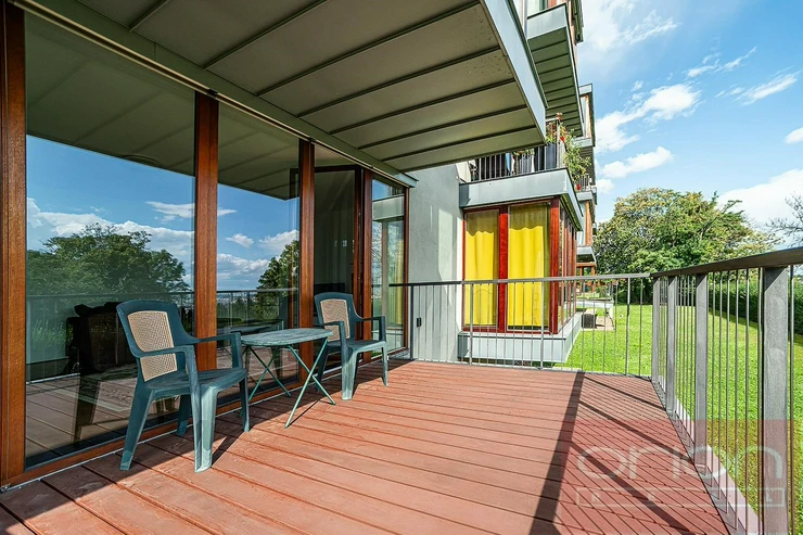 We offer for rent a partially furnished two bedroom apartment on the ground floor of an apartment building in a closed residential complex Villa Park Strahov with 24-hour reception and security in the sought-after location of Prague 6 - Břevnov. The apartment has a total area of 120 sqm and offers an entrance hall, a spacious living room with a balcony overlooking the greenery, a fully equipped kitchen with access to a terrace and a garden of 42 sqm, 2 bedrooms, a bathroom with a bathtub and toilet, a guest toilet and a utility room with a gas boiler and a washing machine. The apartment is equipped with parquet floors, high-quality tiles, underfloor heating, videophone, alarm, security entrance door and one parking space in the garage. The apartment can be furnished or unfurnished, upon agreement. Attractive location with excellent transport accessibility by public transport and by car. Only 6 minutes by car to the French Lyceum and the Nový Smíchov shopping center. Close access to the Prague Ring Road and motorway network, airport and international schools. Petřín Park and Ladronka Park are within walking distance. Available for rent now or by agreement.