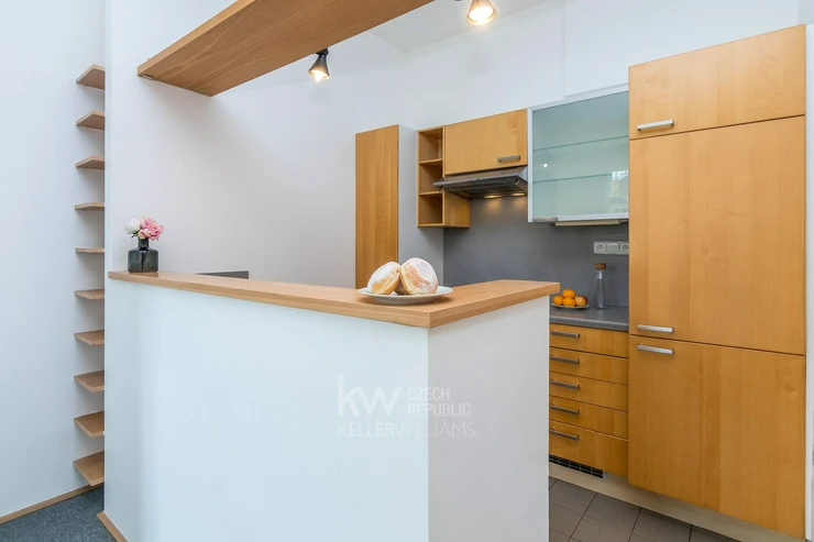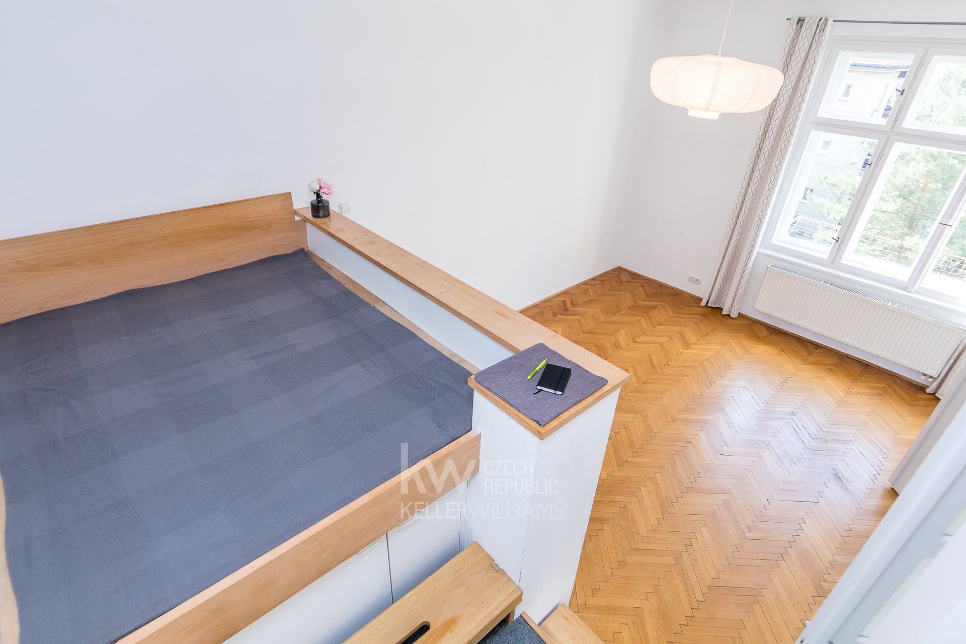 Chcete bydlet v klidné lokalitě pražského Podolí pár schodů od Vyšehradu a kousek od Vltavy? Nabízíme k pronájmu světlý a prakticky řešený byt 2+kk o výměře 51 m2 + balkon ve 2. patře cihlového činžovního domu v ulici Sinkulova. Byt se skládá z obývacího pokoje s kuchyní a z ložnice se zvýšeným patrem na spaní, u kterého naleznete chytře řešené úložné prostory. Byt byl citlivě zrekonstruován a má velmi příjemnou atmosféru. V hlavním pokoji jsou dřevěné parkety, kuchyň je částečně vybavená (lednice, digestoř, elektrická trouba se sporákem) s dlažbou a je zde místo pro myčku. Vytápění bytu zajišťuje nový kondenzační plynový kotel. V koupelně se nachází vana, pračka i zrcadlo, WC je samostatné. K bytu náleží balkon na patře, ze kterého je krásný výhled do společné zahrady, která poskytuje posezení pro příjemné letní večery. Dále se nabízí možnost využít části velkého sklepa v suterénu domu.