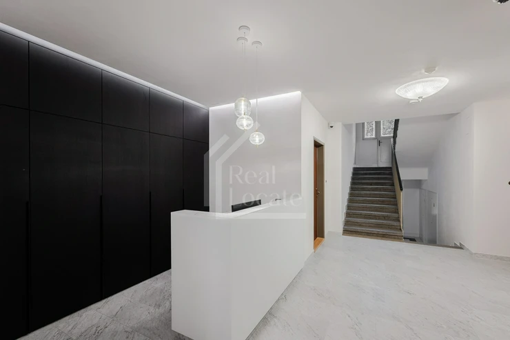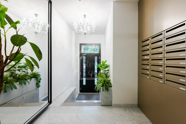 The residence has undergone a complete renovation and offers stylish boutique living with premium services. High-quality oak parquet floors, elegant casement windows, and a representative entrance door complement the sophisticated common areas with details in marble, wood, bronze, and glass. The apartment is heated by gas (water heating and heating). The building has an elevator, a shared courtyard with a garden, and the aforementioned sauna for relaxation after a busy day.