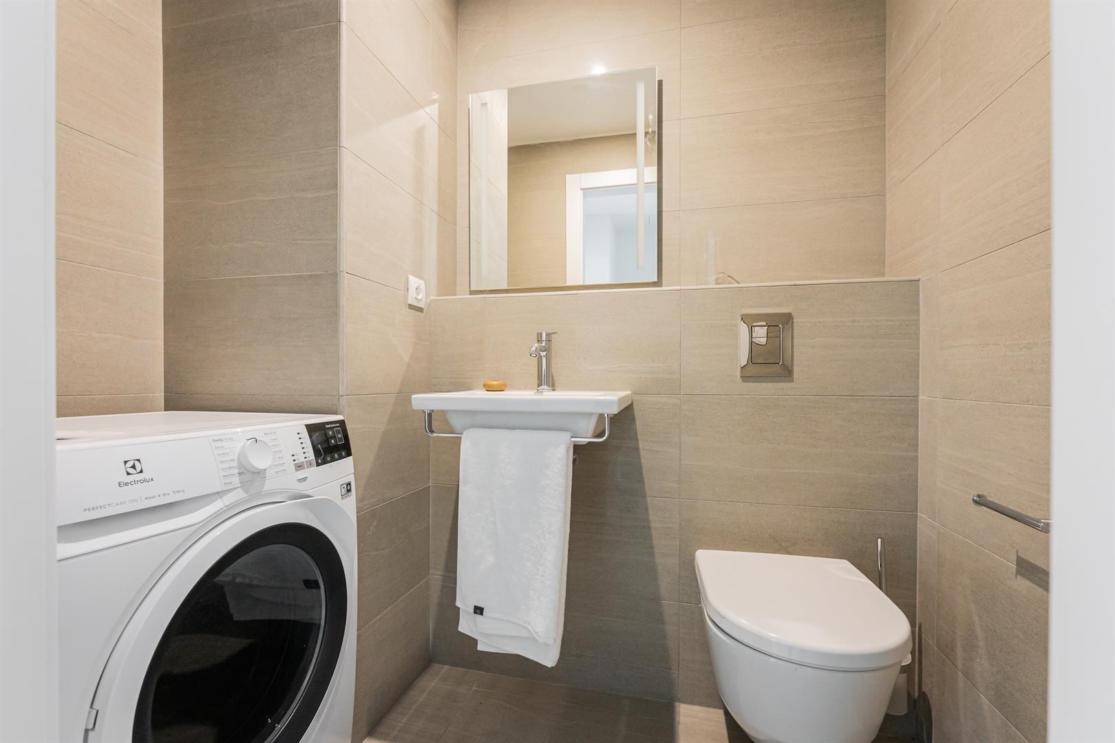 The interior of this apartment is fully furnished and features an entrance hall (3m2) with a separate toilet, a spacious living room (30.11m2) with a fully equipped kitchenette (fridge, freezer, oven, dishwasher, electric hob, microwave, extractor hood), a separate bedroom (17.14m2), and a stylish bathroom (7.74m2) with a bathtub, shower, sink, toilet, and bidet. The advantage of the apartment is the terrace accessible from both rooms. A cellar is available.