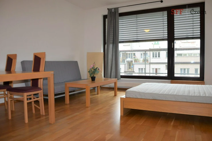 Available January 2, 2026. For Long-Term Rent Modern, Furnished Studio Apartment with Balcony in Residence Korunní, Prague Vinohrady