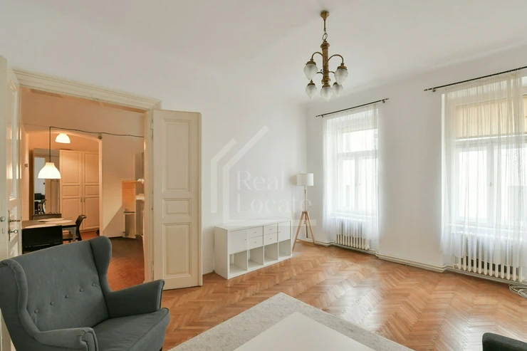 We offer for rent a spacious and bright 3+1 apartment with a floor area of 80 m², located on the 2nd floor of a historic building at the prestigious address Masná 10, Prague 1. The apartment is fully furnished with furniture and appliances (including a washing machine).