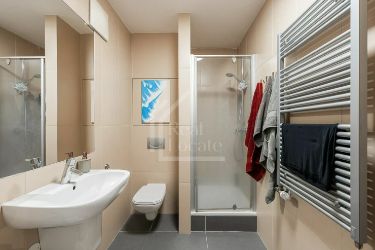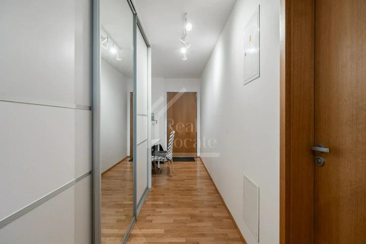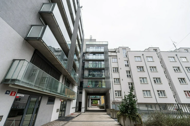We offer for rent modern, partly furnished apartment 1+kk + balcony (44m² + 4m²) for rent, located on the 2nd floor of a new building with elevator in Křižíkova street, Prague 8 - Karlín. The dominant feature of the apartment is a living room with kitchenette and access to the longitudinal balcony. There is also a bathroom with shower, toilet and washing machine with enough space for a dryer. In the hallway there is a large built-in wardrobe with plenty of space to store even larger items. In addition, the apartment has a parking space in the house. Very desirable location with easy access to the center. All amenities nearby. Right by the metro station Křižíkova. Suitable for max 2 persons.