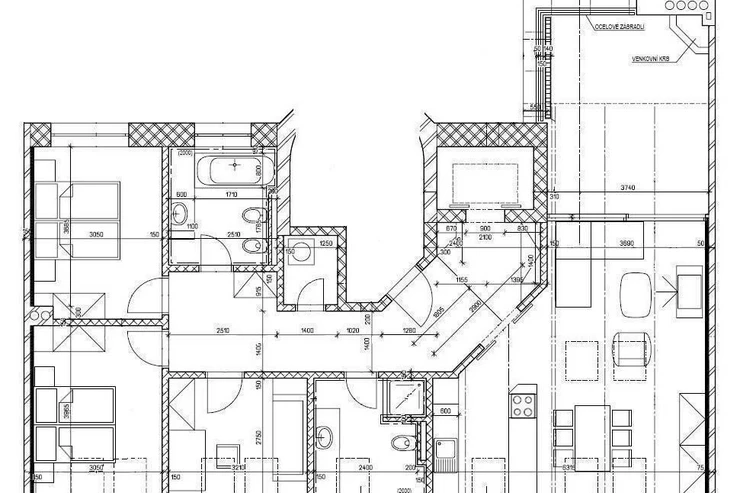 Modern air-conditioned apartment 4+kk, with a terrace (19.2m2), totaling 119m2, is situated on the 4th floor in the popular residential area of Prague 5 Smíchov. The apartment will be newly painted in white, carpets in the rooms will be replaced with vinyl flooring, and furniture can be left or removed. The layout of the apartment offers a living room connected with a dining area and a kitchen with built-in appliances (fridge/freezer, stove, microwave, dishwasher), 3 separate bedrooms, two bathrooms (one with a bathtub and toilet and the other with a shower and toilet). The spacious terrace equipped with an outdoor fireplace provides a pleasant sitting area. Other apartment amenities include: LCD TV, satellite, washer with dryer.