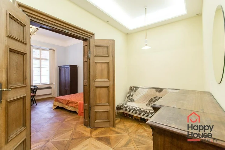 We offer to rent a spacious, fully furnished and equipped one-bedroom apartment of 50 sqm situated in the picturesque and quiet location of Prague 1, in Malá Strana. The apartment is located on the 2nd floor of a brick historical building without an elevator, right below Prague Castle. The apartment includes a shared garden in the courtyard.