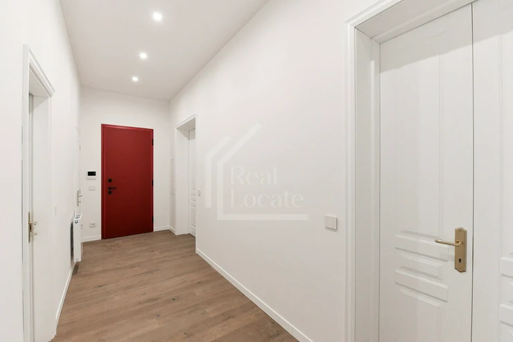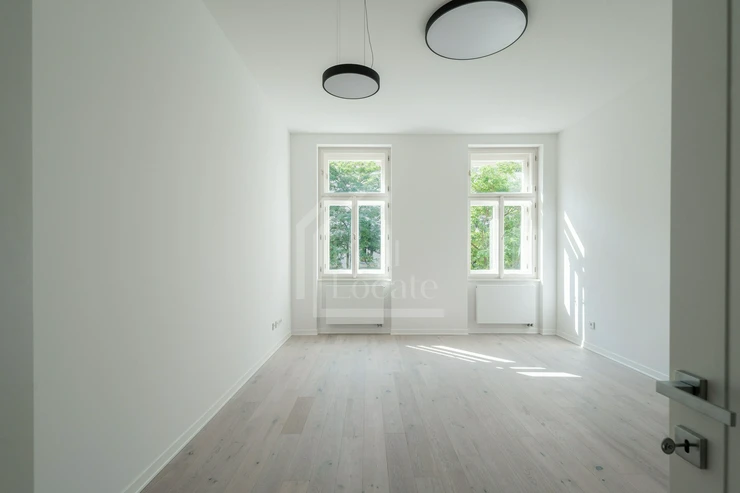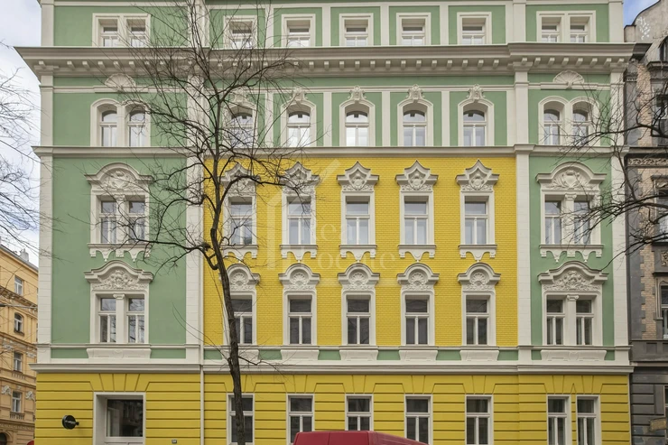 We are pleased to offer for rent a unique 2-bedroom apartment with a total floor area of 97.5 m², located on the elevated ground floor of an elegant, renovated historic building in the sought-after residential area of Vinohrady. The interior was created in collaboration with Italian architects, combining modern city living with respect for the original architecture, high-quality materials, and timeless design.