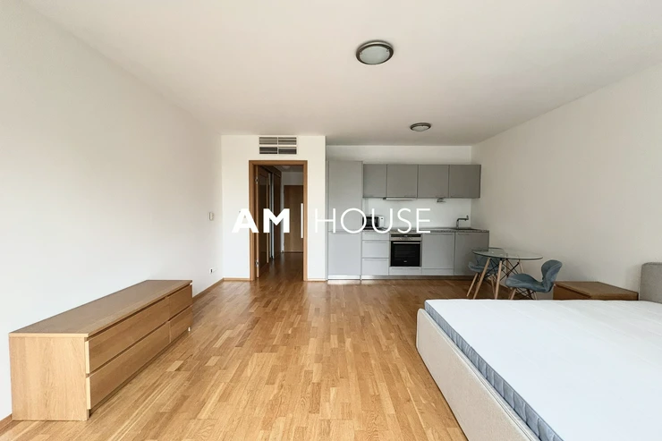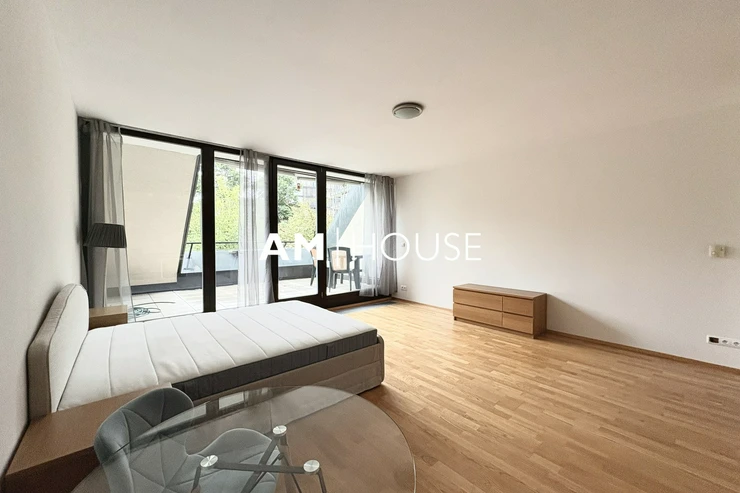 We are offering a modern and elegant studio apartment 1+kk with a total area of 44 m², featuring a spacious 15 m² terrace, located on the 2nd floor of the prestigious Central Park Prague residential complex in the popular district of Žižkov.