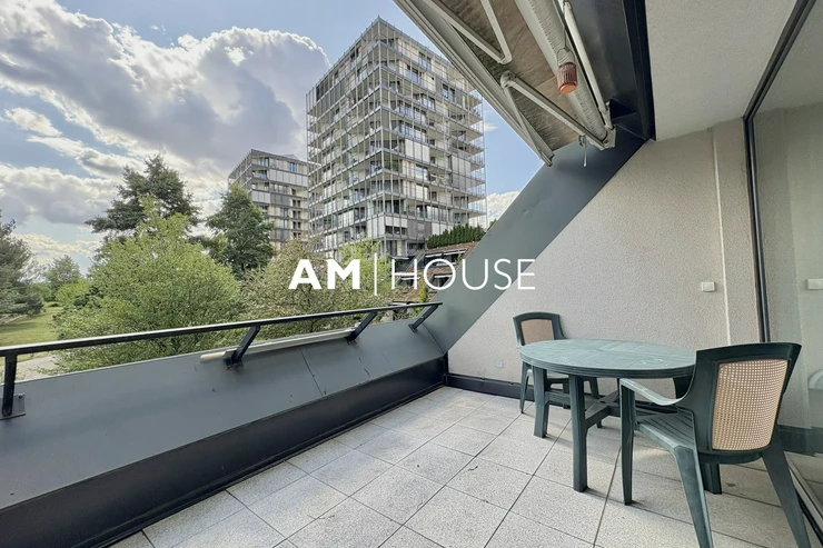 A highlight of the apartment is the spacious 15 m² terrace, facing a quiet courtyard and equipped with a sun awning, offering a pleasant outdoor space even on sunny days. The apartment also includes air conditioning, ensuring comfort even on hot days.