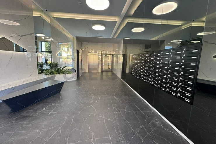 This bright 2-bedroom apartment (46.6 m²) with a 9.3 m² terrace, located on the 3rd floor of the Meridiem residential project – Building A1 (the central and tallest building), will catch your attention right away.