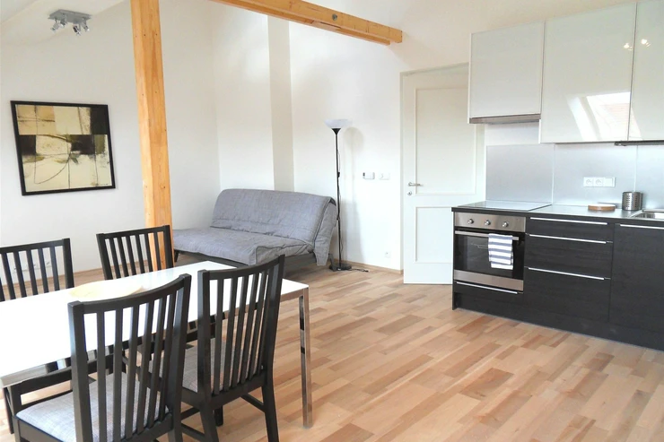 A new luxury apartment for rent in a newly renovated building with an elevator. The apartment is located in close proximity to Stromovka Park and just a short walk from Letná Gardens. A tram stop is just a 5-minute walk away, and it takes only 10 minutes to reach the center of Prague.