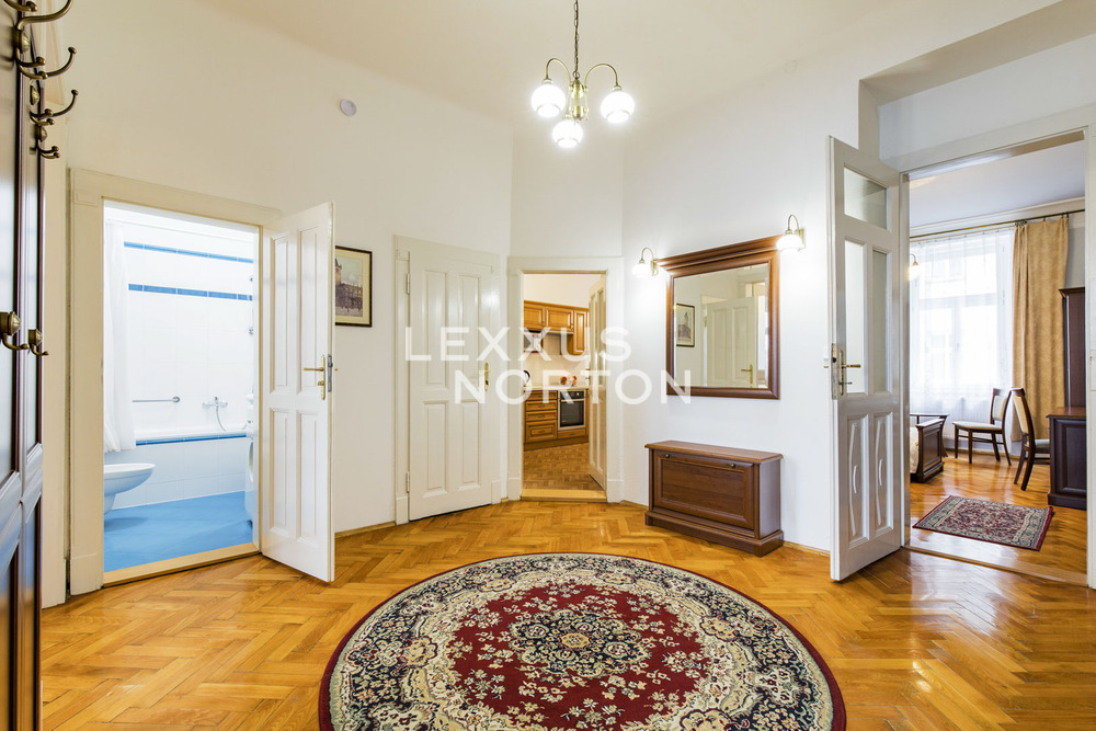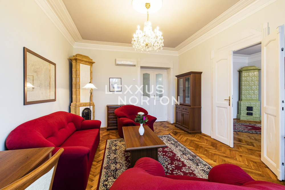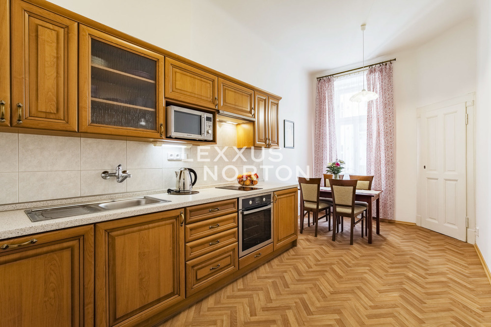 We offer for rent a 100 sqm apartment with a balcony overlooking the Vltava River and Prague Castle, located on the 1st floor of an Art Nouveau building from 1913 in the historic center of Prague on the banks of the Vltava River with a reception.The interior consists of an entrance hall, living room with direct access to the balcony, fully equipped kitchen, 2 bedrooms, bathroom (bathtub, toilet, and bidet), separate toilet, and walk-in closet. The apartment is fully furnished and equipped with air conditioning, a wall safe, TV/SAT connection and high-quality internet connection, a decorative tile stove, wardrobes, beds, a sofa set, a dining set, ceramic hob, oven, refrigerator, freezer, microwave, and dishwasher.Living in the center of Prague with excellent transport accessibility. The location has a dense network of public transport lines (buses, trams, Karlovo namesti metro stations). By car, you can reach the city ring road in 7 minutes, Vaclav Havel Airport in 26 minutes, and the Novy Smichov shopping and entertainment center in 4 minutes. Within walking distance are hospitals, pharmacies, supermarkets, shops, bars, restaurants, cafes, playgrounds... There are kindergartens, elementary schools, high schools, and a prestigious school, Lycée Francias de Prague, nearby. For leisure activities, you can use the sports grounds, traffic playground, or take a walk to the Albertov, Ztracenka, and Folimanka parks Karlovo namesti, Na Klarove, the Botanical Garden, or Slovansky ostrov. In front of the house is a year-round excursion boat dock, a pedestrian colonnade, and a bike path. Every week, there is a well-known farmers' market on the Vltava River embankment. Various cultural and sporting events (concerts, exhibitions, sporting attractions) are also often held here, which are very popular among Prague residents and visitors.The amount of billable monthly advances is CZK 7,000.The inquiring client agrees to pay a commission of 1 month's rent plus VAT.If you are unable to view the property in person, we also offer a real-time video tour from the comfort of your home via Messenger, WhatsApp, and other communication platforms.