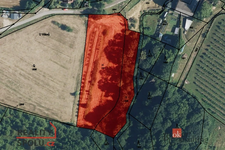 • Možnost výstavby rodinného domu na přední části pozemku, rekreačního objektu nebo investičního záměru