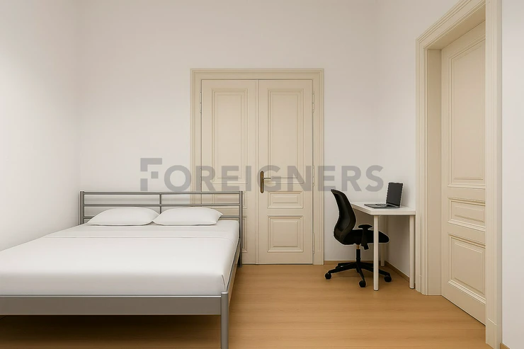 A bright and spacious 18 m² room is available for rent in a 4+kk apartment (100 m²) located on the elevated ground floor of a beautifully renovated building on Jaselská Street, in the popular Veveří district of Brno-střed.