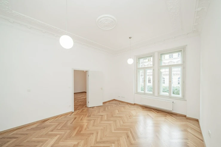 Living in a beautiful residential area near Rieger Gardens and 5 minutes to the center. We offer for rent a newly renovated apartment 2+kk (1 bedroom, 1 bathroom) with a total area of 65.6 m2. It is located on the 2nd floor of a completely renovated residential building with a new elevator in Prague 2 - Vinohrady, Balbínova street.