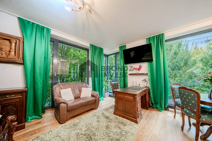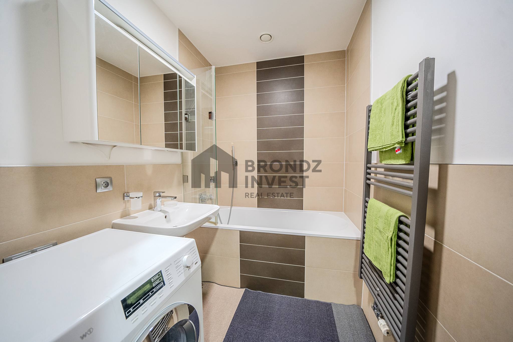 The apartment is fully furnished and equipped with high-quality furniture and Miele appliances.
