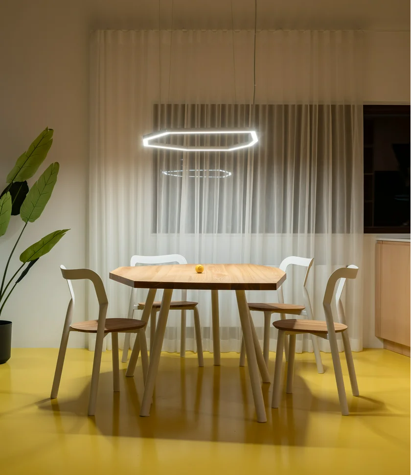 One of the standout elements of the redesign was a custom dining table created by CASA MODERNA’s team. Designed to mirror the home’s floor plan, it became the heart of the space.