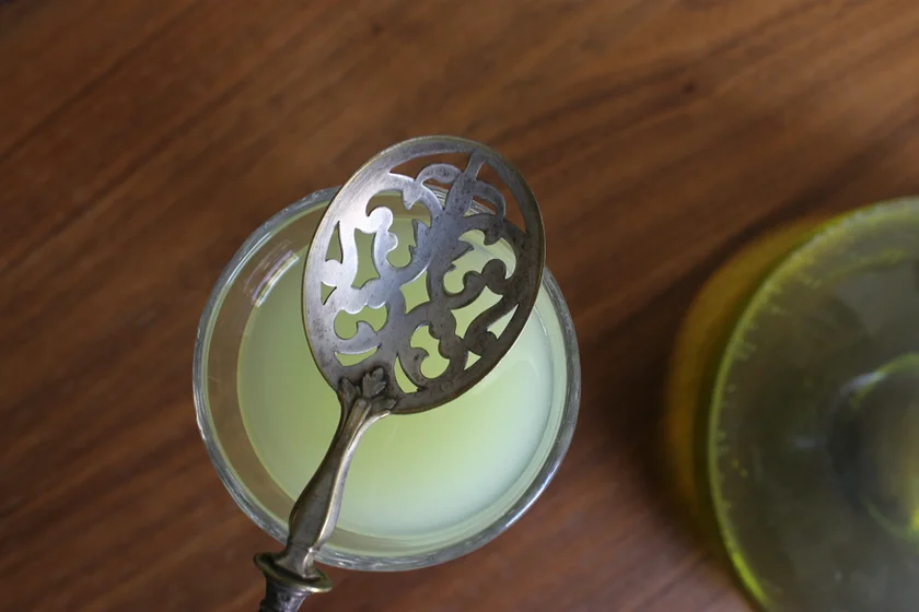 He cautions against the “Bohemian-style method,” which involves setting absinthe on fire or melting sugar over it. “It’s just a marketing trick for amateurs,” he says. He also advises avoiding many so-called “absinthe bars” that are tourist traps, offering inferior versions of the drink—another form of forgery and betrayal surrounding this centuries-old beverage.