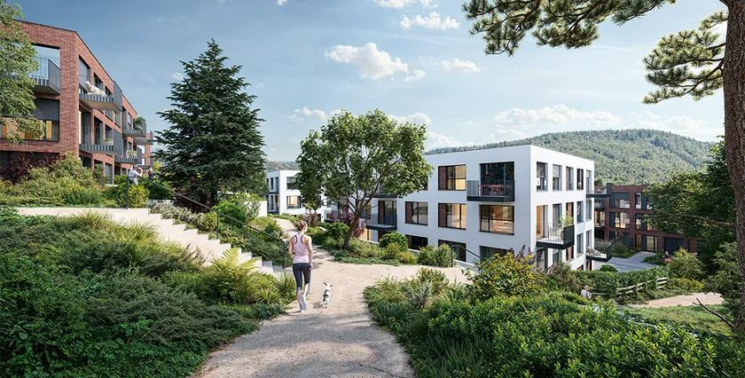 On the edge of Liberec and just an hour from Prague, Nová Kunratická offers new-build apartments surrounded by forest and mountain views. Floor plans range from 1+kk to a spacious 4+kk rooftop penthouse with over 150 sqm of open living space and a private 80 sqm terrace. Oversized windows bring in plenty of natural light, and the Jizera Mountains feel like part of the backyard.