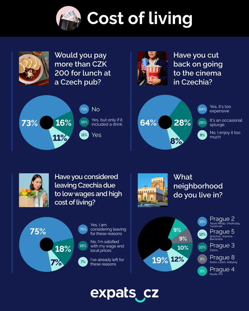 One of the hottest topics among Expats.cz readers have been the rising cost of living in Czechia. Many of you reported cutting back on cultural events and pub lunches to save money. In a 2023 poll, most readers revealed they live in Vinohrady, which this year overtook historic district of Malá Strana as the priciest neighborhood for rentals. With 75 percent of you planning to move due to costs, it’s clear that rising prices are at the top of your mind.